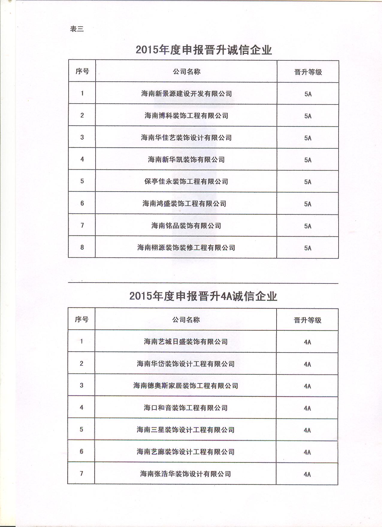 三、2015年度申报晋升诚信企业;2015年度申报晋升4A诚信企业