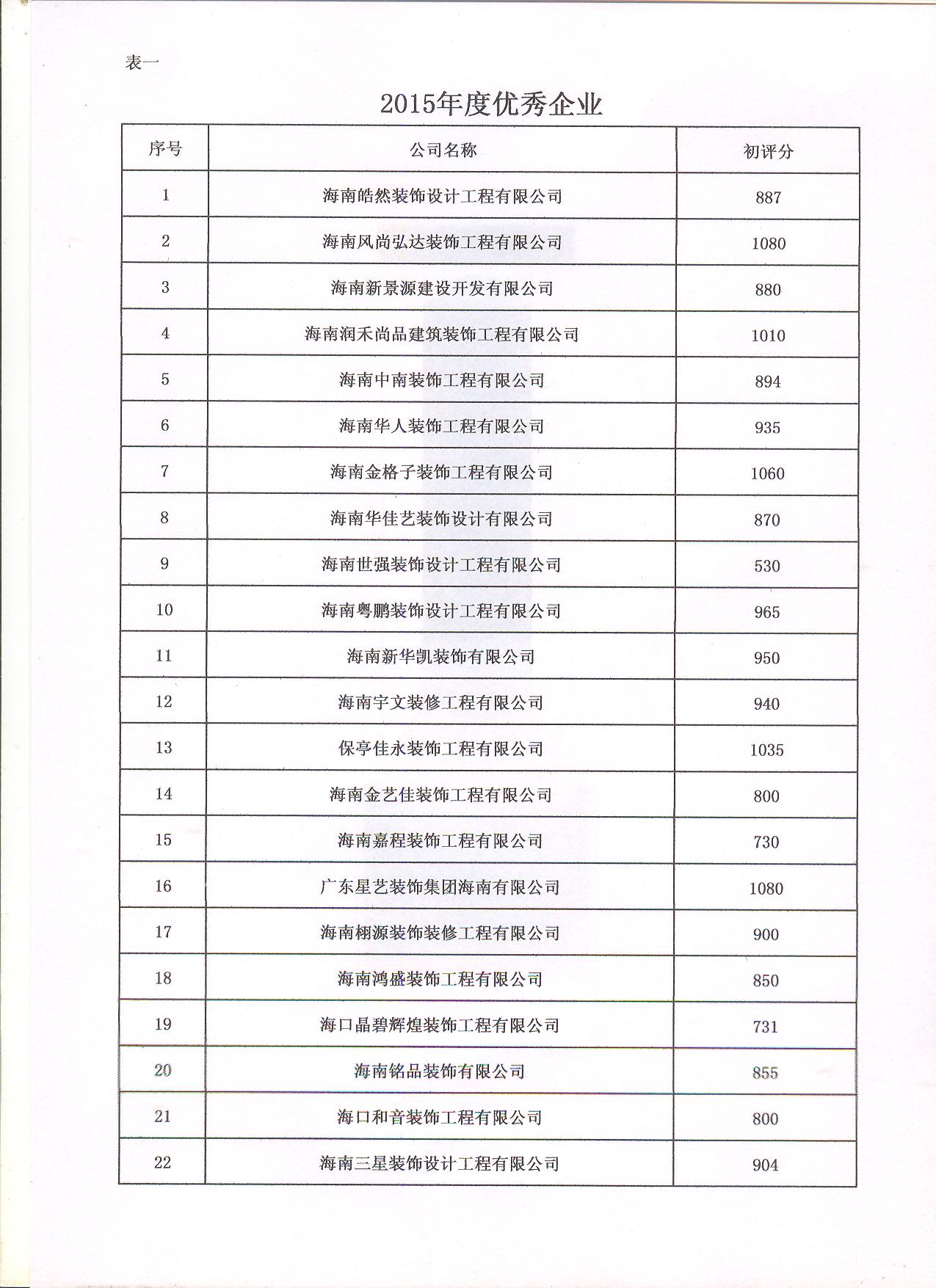 第一次初评结果:优秀企业共22家;优秀工程项目公装19项、家装23项;诚信经营企业4A级7家、5A级8家。现将优秀企业、优秀工程项目、诚信经营企业初评结果在协会网站上公示,协会秘书处将在公示期间对审报项目进行实地考察,再次公示二次评审结果,最后确定最终评审结果,希各知照。