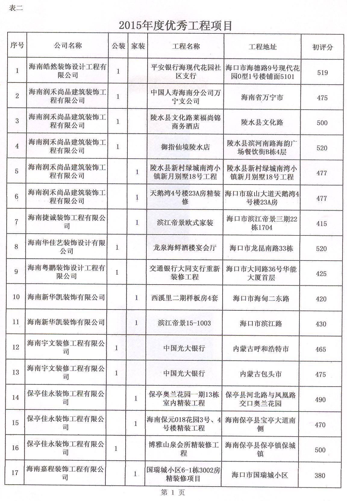 我协会今年开展的2015年度优秀企业、优秀工程项目以及诚信经营企业晋升4A、5A等级的评审工作已有一段时间,现将第一次评审情况予以公示,以便接受全体会员企业以及社会公众的监督评议,望各会员企业踊跃向协会秘书处以电话或书面方式提出相关意见,以便做出相关调整及修正。