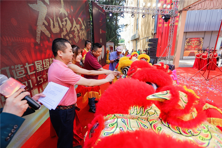 开业现场礼花漫天,掌声雷动。一段舞狮表演将现场气氛推向高潮,寓意着欧派海口旗舰店从此华丽起航,一路高歌、灿烂辉煌!
