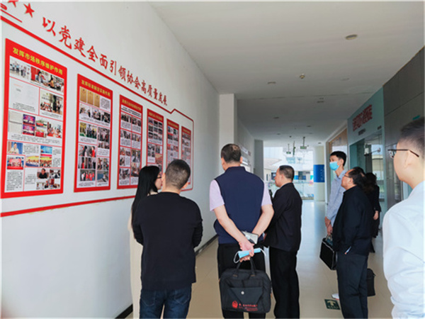 协会常务副会长兼秘书长王抒首先在协会党支部宣传走廊里,向指导组一行介绍协会在协会党支部党建引领下,通过制定行业标准、规范行业秩序、评选放心企业、调节矛盾纠纷等一系列举措,积极为行业及企业服务等协会开展工作事迹及所取得的成绩。