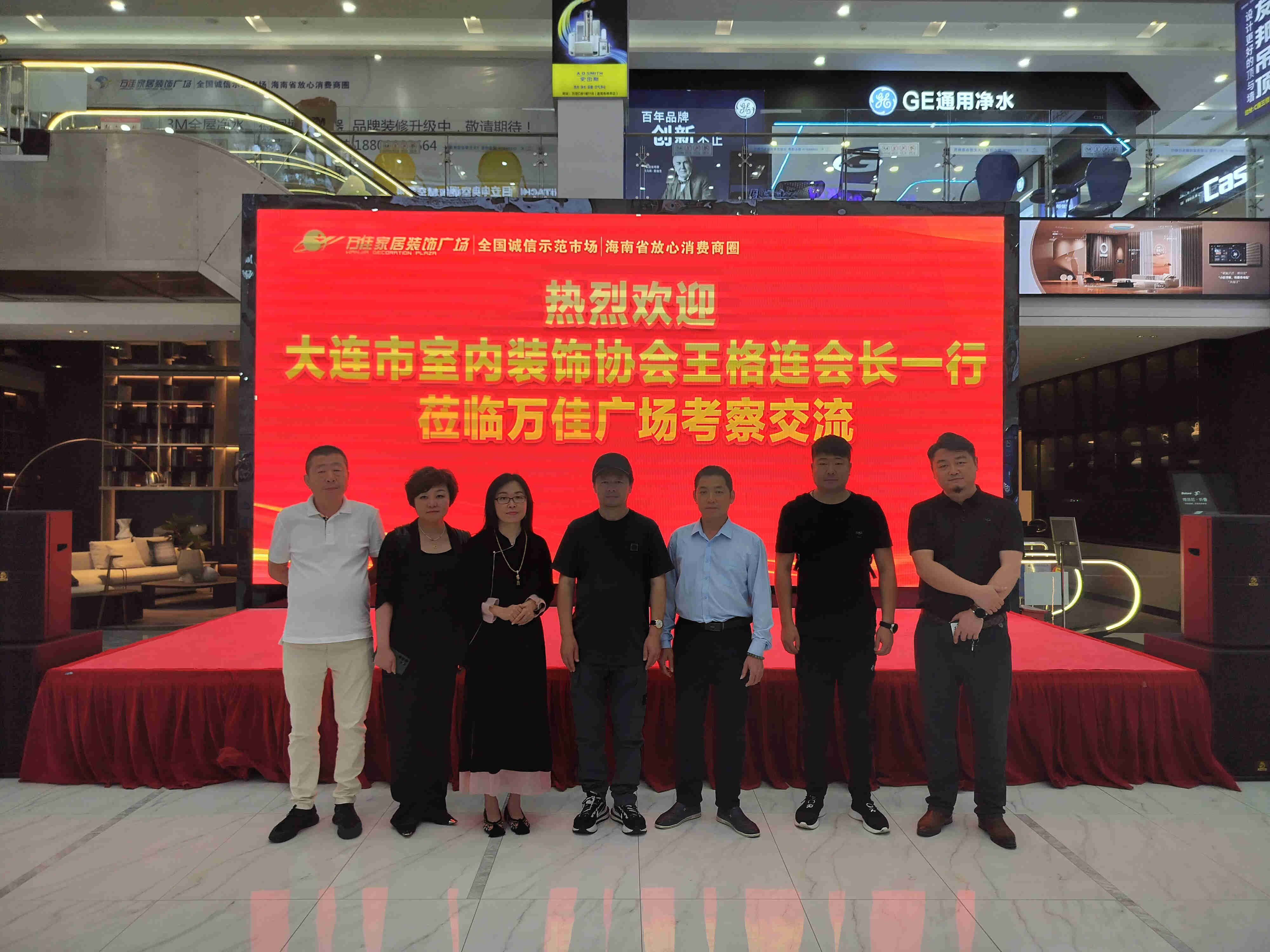 11月16日下午,因业务发展需要,大连市室内装饰协会王连格会长一行5人来到万佳家居装饰广场参观考察。协会会长王抒、万佳实业副总经理吴雄、协会副秘书长杨波陪同参观考察。