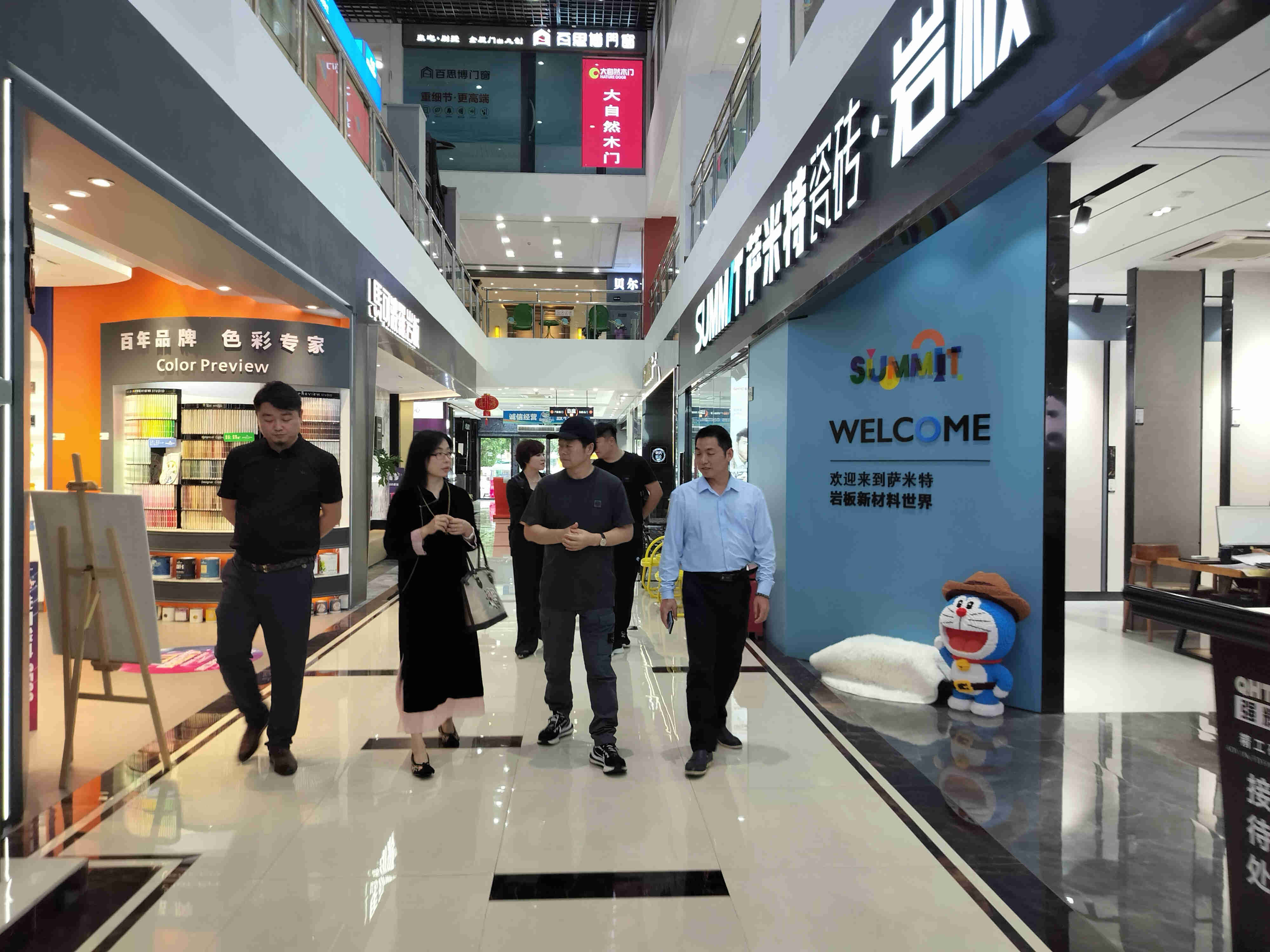考察团一行来到协会副会长单位:丽家富邦装饰材料有限公司——马可波罗瓷砖/金牌橱柜万佳旗舰店参观考察。丽家富邦总经理王三付、副总经理李书立陪同参观考察并作详细介绍。