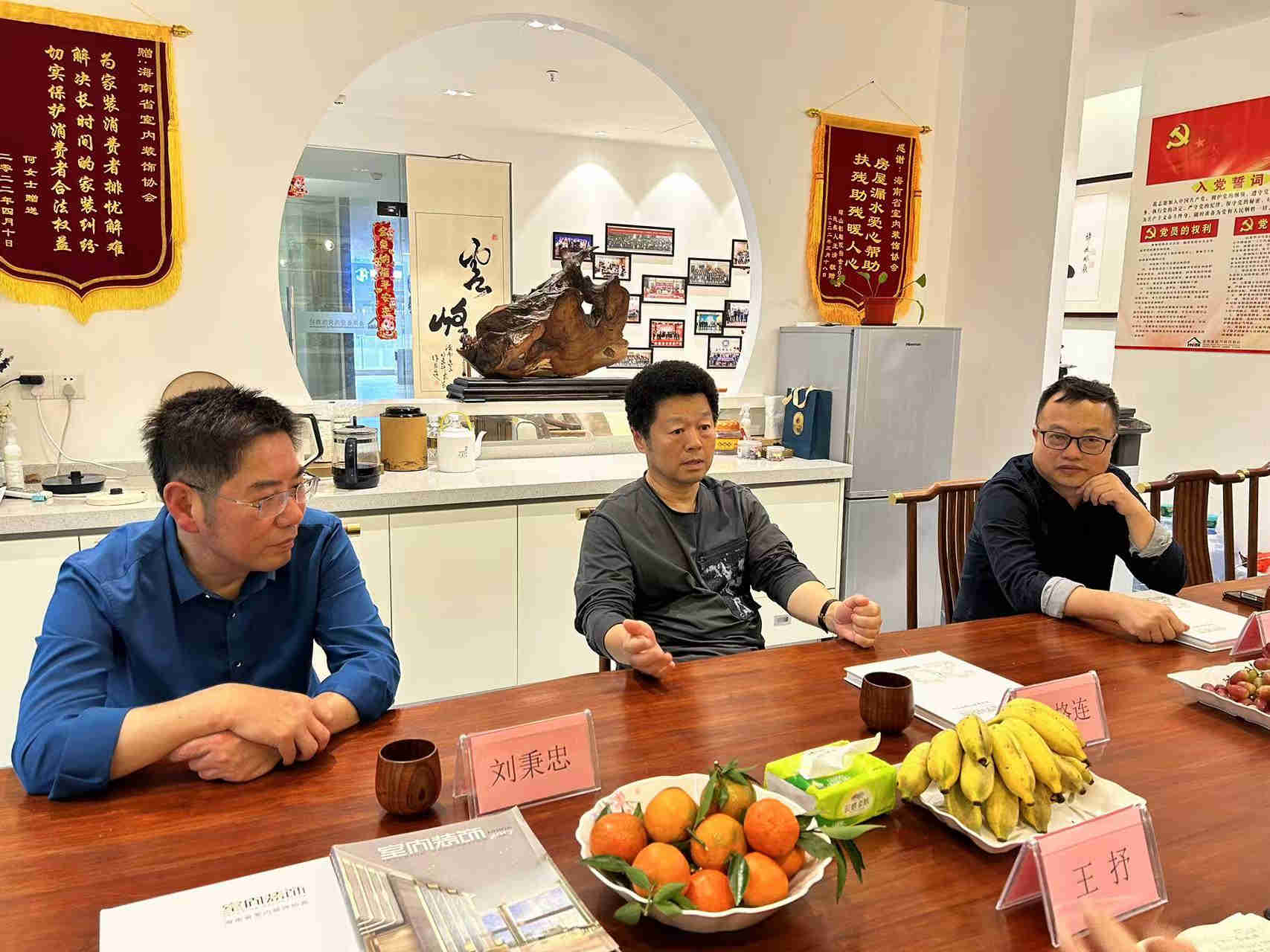 2023年11月15日,早冬微凉,协会迎来了大连市室内装饰协会、贵州省室内装饰协会到访。让凉意渐浓的海口感受到了温暖和热烈!协会会长王抒、秘书长许俊生、副秘书长杨波热情接待了兄弟协会一行。